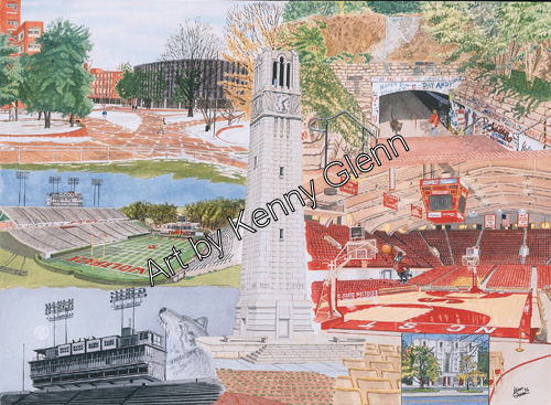 ![]() The Wolf Howls North Carolina State University Limited Quantity Available Framed: $225.00 Unframed: $60.00 (31" x 26")